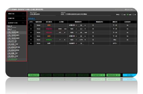 一、概述(主設置方案界面簡介)工作方案腳本的編程性能的強弱是整個電池測試系統(tǒng)非常重要的指標。1.LANBTS電池測試系統(tǒng)允許用戶對每個通道或者是多個通道同時或是分別設定多至65500個“工作步驟”的過程編程。2. 每個“工作步驟”由變量操作、工作模式、結束限制條件1、結束限制條件2、以及跳 轉(zhuǎn)(跳轉(zhuǎn)至)、記錄條件等五個部分組成。3. 變量操作幫助用戶操作(用戶)自定義的變量來實現(xiàn)多功能的測試方案編輯;4. 工作模式是...